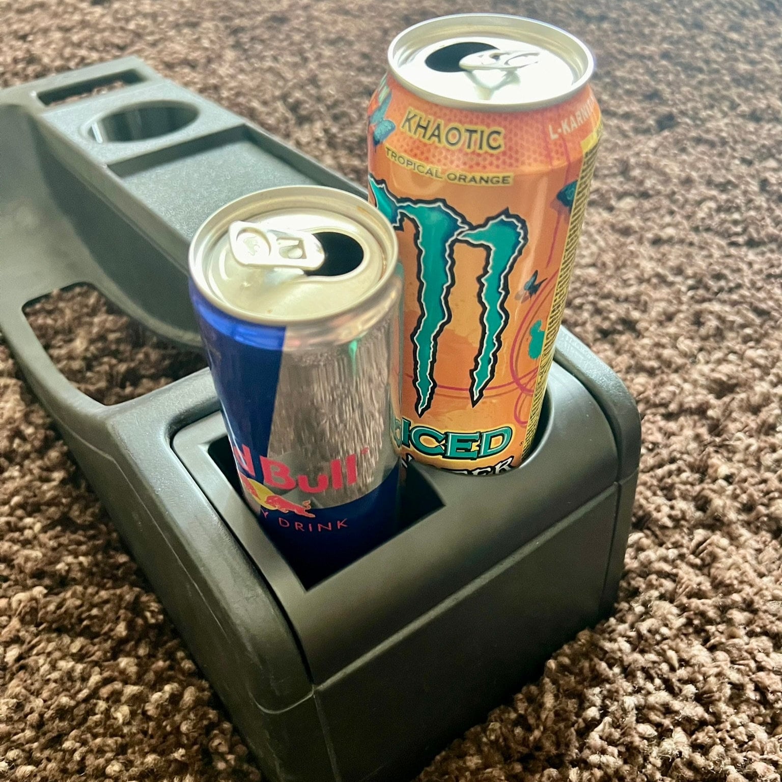 One side serves as a full-size cup holder, while the other offers a small storage compartment—ideal for smaller drinks (up to 355 ml) or small items.
