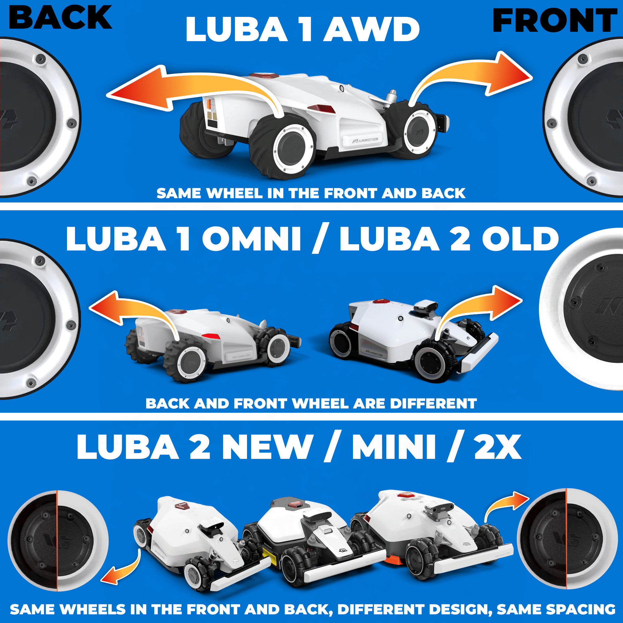 This wheel cover set is compatible with Mammotion Luba 10000, 5000, 3000, and 1000, including Luba 1, Luba 2, AWD, Luba 2X (2025), and Luba Mini.